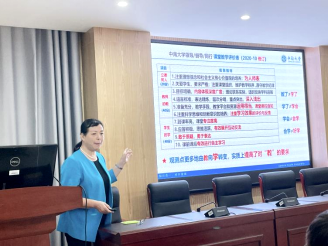 课堂教学评价与教学文档的抽查结果,从督导听课评课的角度强调了教师做好课堂组织、认真进行课件编排与使用、积极进行课堂互动交流、及时给与课前课后指导的重要性,并指出课程思政案例的融入要自然贴切、润物无声,教师教学要“备学生备知识备方法”。她还从个人多年的教学经验中总结到:教师对待教学的态度和在教学过程中展现的人格魅力就是潜移默化的课程思政,良好的师德令学生受益终身。