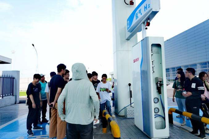 最后,同学们来到制氢加氢站。氢能是一种高效、清洁的能源,作为实现能源转型升级的重要助力,氢能越来越受国家重视。通过讲解员的介绍,大家学习了电解水制氢的具体流程,可谓是收获满满。同学们在本次参观中不仅学习到了丰富的专业知识,更感受到了身上所肩负的责任——承担能源转型,勇于创新,不断奋斗的责任。正如三一集团厂房里悬挂的标语所提醒的那样:我们要为实现中华民族伟大复兴的中国梦而努力奋斗。