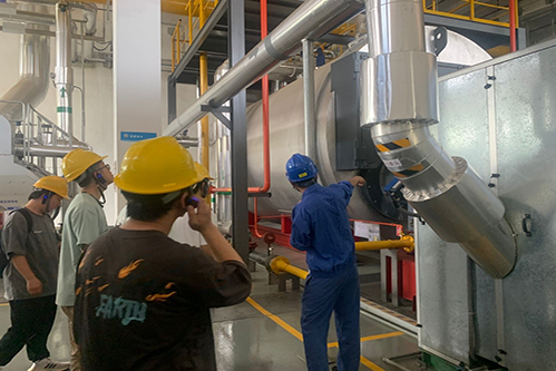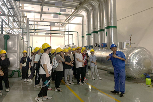最后,大家来到厂房的另一部分,这里安置着生产设备的制冷供热系统,其正常运行对生产线的稳定起着至关重要的作用。在专业人员的讲解下,同学们见识并进一步了解了以往在书本上平面展示的相关器件。同学们积极提问,工作人员耐心解答,参观过程气氛良好。