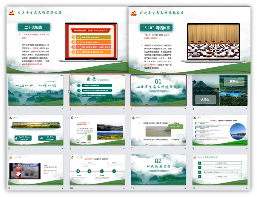 活动第一项为北京大学博士生讲师团刘晔龙以《一山一水,一呼一吸——从山西生态文明建设看习近平生态文明思想》主题分享了生态文明的重要性及其在中国的发展。他以山西省的生态建设成就为例,详细介绍了通过大规模绿化行动和环境保护措施,使得山西如何从一个环境恶劣的省份转变成了生机勃勃的绿色地区。强调了习近平生态文明思想的理论地位和实践进展,如汾河的治理和空气质量的显著改善。他还提出了自己对于党的生态理论实践的理解,希望通过分享激发更多关于生态文明建设的讨论和思考。