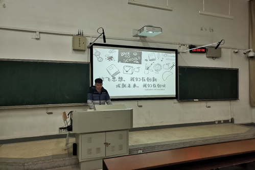 本次班会由张俊松同学主持。他先进行了简单的自我介绍,待同学们注意力集中后,他开始了班会的主要内容。首先,他讲述了双创的基本含义:创新、创业。随后便引入了乐高机器人、VR技术、3D打印技术、文创等参赛方向,并且让大家知道争取创新创业的参赛对象就是面向大学生群体。除此之外,他还宣传了中国“互联网+”大学生创新创业大赛,并鼓舞大家搏击“互联网+”新时代,壮大创新创业生力军。