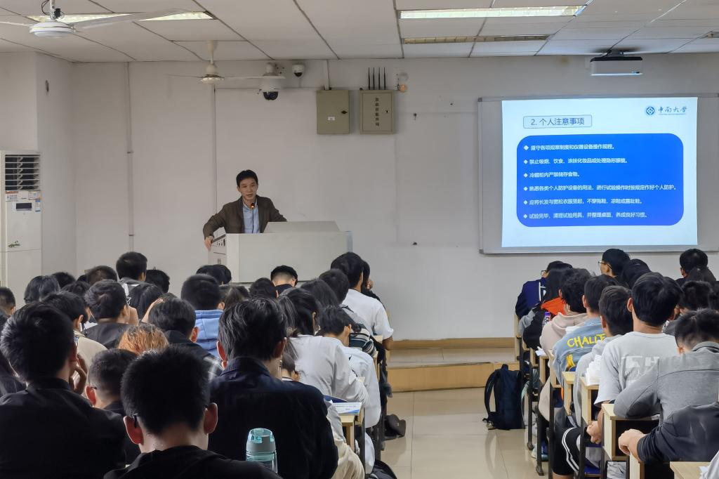 于校本部科教南楼602开展实验室安全与环保教育线下讲座。此次讲座旨在让同学们学习安全环保知识,树立安全环保意识,增强应急处理能力。本次讲座由分管实验室工作的李海龙副院长主讲,能源院21级全体新生参加。