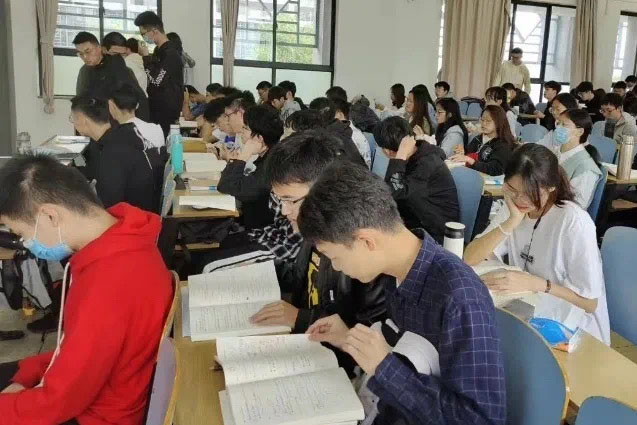 十分重视,分别将21级同学按班级分为九个小队,各班学习委员为队长,带领和组织班级同学进行晨读。活动期间,小队长们尽职尽责,为了更好地完成活动任务,计划并展开了针对性晨读,以“小组晨读”、晨练+晨读”、“互动性晨读”、“辅导员陪读”等模式,并制作了晨读签到表,对积极晨读的学生进行表扬和适当奖励,激发同学们的积极性,让大家更好地投入晨间学习中。各班同学也积极配合,即使每班每次晨读人数只要求10人,但许多同学自觉晨读,使得每次每班都能有平均20人以上参与。