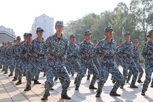 分列式方阵首先进行站军姿训练,之后则是进行正步的分解训练以及连贯训练和定腿训练,最后进行齐步走的踏步训练。“千里之堤,溃于蚁穴”,在训练中教官们精确到个人去纠正动作,以保证队伍走出来的动作统一、整齐而优美。