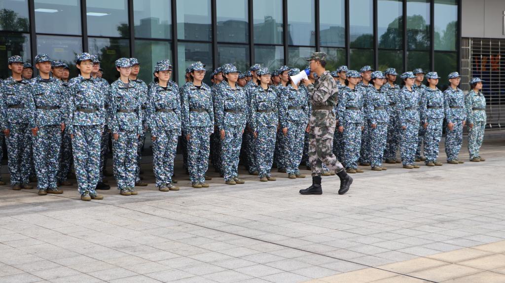 在训练场上,齐步走靠脚没有向后退的说法,因为没有后退当逃兵的中国军人;军训动作要做到位,因为没有能力不强的中国军人;做错了要立刻打报告,因为没有推卸责任的中国军人;做公差要积极主动,因为没有集体意识不强的中国军人。中国军人保家卫国,守边疆、守民心,我们学习军训知识技能,致敬可亲可敬的中国军人。我们于军训中体会使命担当,于绿营里涵养家国情怀,勇做新时代的弄潮儿。
