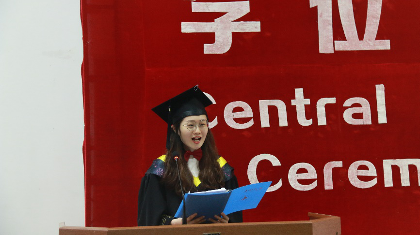 2019届硕士毕业生代表周冰洁则表达了毕业的喜悦和离别的不舍并抒发了内心真诚的祝愿与感谢:“感谢母校,感谢在线之家
