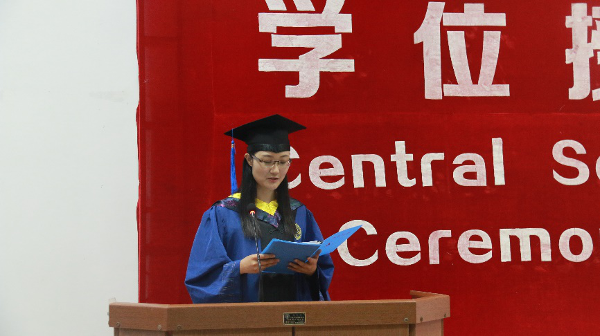 典礼由院党委副书记彭春丽主持。悠扬雄壮的国歌奏响,全体人员起立合唱国歌,此次典礼随之正式拉开帷幕。院长孙志强教授宣读获得学士学位、硕士学位的毕业生名单。