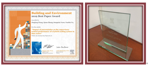 王加强老师发表的论文Impact of uncertainties on the supervisory control performance of a hybrid cooling system in data center(//www.sciencedirect.com/science/article/pii/S0360132318307212),经过激烈的角逐,并凭借研究方法的原创性、对所研究领域的贡献、表述质量和清晰度以及科学的可靠性,从3000余篇投稿论文中脱颖而出,荣获2019年度最佳论文奖(Best Paper Award)。该奖项成立于2007年,是为了鼓励在Building and Environment期刊中发表高质量的论文。
