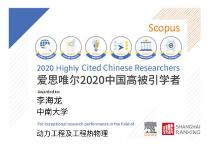 李海龙教授入选动力工程及工程热物理学科“中国高被引学者”。