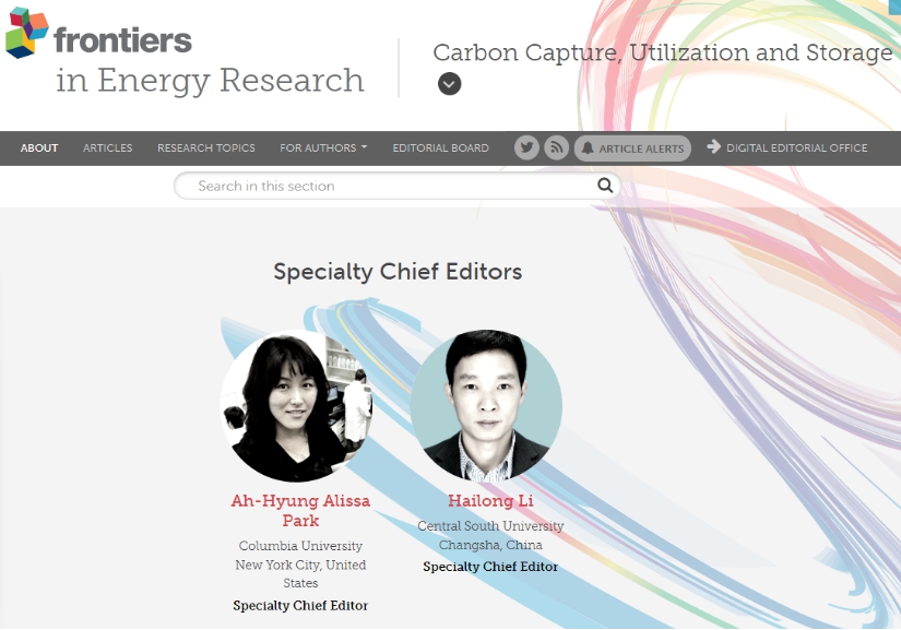 李海龙教授应Frontiers出版社(引用率排名全球第3位)邀请担任Frontiers in Energy Research 期刊CCUS栏目主编。Frontiers in Energy Research(IF=3.858)是瑞士 Frontiers出版社旗下的能源类期刊,包括先进清洁燃料、生物质能、CCUS、电化学能、燃料电池、氢能、核能、太阳能、风能、能源系统、能源政策等13个栏目。